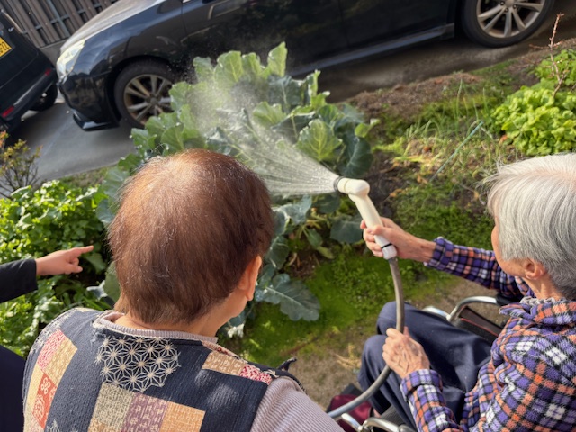それぞれ、わ~わ~言いながらの水やり日和です。